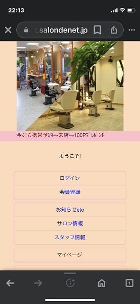 2.「予約」に進み、メニュー日時、スタッフを選択します。